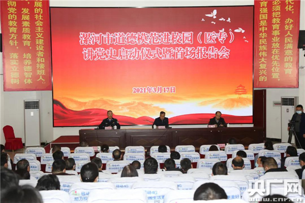 央廣網(wǎng)漯河3月18日消息(記者 彭華 通訊員 趙陽 姚遠)3月17日下午,漯河市委宣傳部在漯河醫(yī)學高等?茖W校報告廳舉行道德模范進校園講黨史啟動儀式暨首場報告會。全國道德模范提名獎榮獲者、全國公安楷模、中國好人陳曉磐作了題為《學黨史強信心增干勁 守初心擔使命建偉業(yè)》的專題報告。