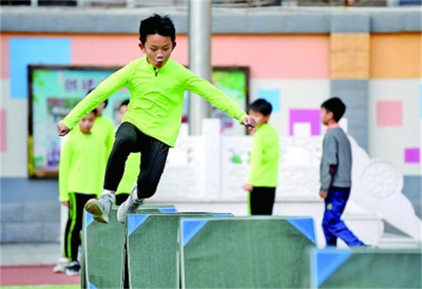 河北石家莊市橋西區(qū)裕華西路小學內,參加課后托管的學生在進行體育訓練。新華社發(fā)
