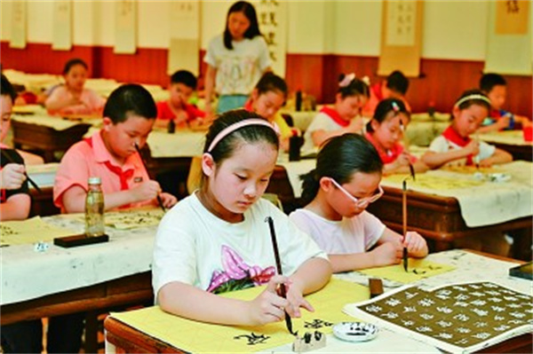在福建福州市烏山小學,學生在參加課后書法興趣班。新華社發(fā)