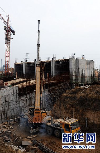 這是南水北調(diào)中線工程新鄭南段新商鐵路渠道倒虹吸施工現(xiàn)場(chǎng)(11月13日攝)。