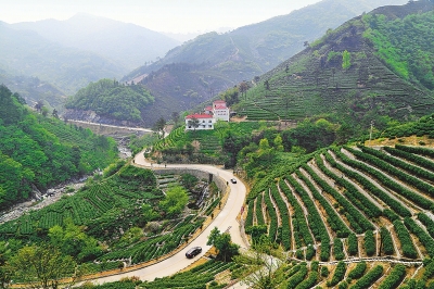 圖①昔日的荒山變成了美麗的茶山。