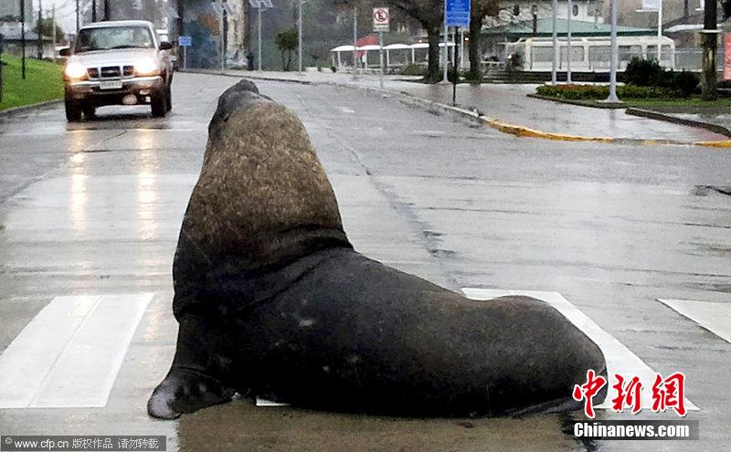 央廣網(wǎng)河南分網(wǎng)消息 據(jù)中新網(wǎng)報(bào)道:當(dāng)?shù)貢r(shí)間2014年6月2日,智利瓦爾迪維亞,一頭海獅出現(xiàn)在馬路上。這頭海獅迫使道路交通停滯,38歲的企業(yè)管理人員Marcela Solis在早間上班時(shí)拍攝到這一景象。盡管海獅在當(dāng)?shù)厥制毡?但是他表示自己從來沒有在道路上看到過海獅,更沒有看到過使用斑馬線的海獅。