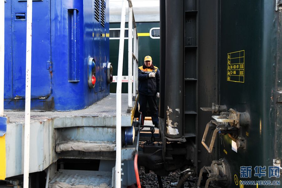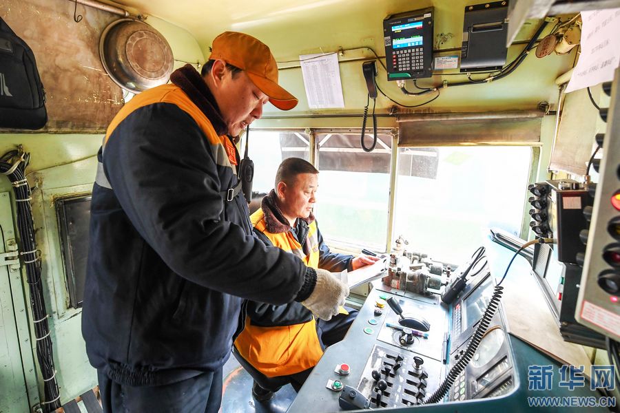 1月24日,調(diào)車長程浩(左)與牽引機(jī)車司機(jī)溝通當(dāng)日調(diào)車計(jì)劃。 春節(jié)臨近,鐵路迎來節(jié)前客流高峰。鐵路運(yùn)輸工作中,離不開一群為火車“穿針引線”的人——調(diào)車員,他們24小時(shí)不間斷輪班,保證列車按時(shí)出入庫,并根據(jù)車次、客流的變化,對(duì)列車車廂進(jìn)行拆分和重新編組,保障春運(yùn)期間列車安全、準(zhǔn)時(shí)運(yùn)送旅客。 鄭州火車站運(yùn)轉(zhuǎn)車間調(diào)車長程浩說:“我們的工作是把一節(jié)節(jié)車廂編組成一列火車,將其中有問題的車廂換掉,送檢、清洗,再將整列火車?yán)交疖囌景l(fā)車,形象點(diǎn)說就是為火車穿針引線。”在鄭州火車站運(yùn)轉(zhuǎn)車間,調(diào)車小組一般由5人組成:一名調(diào)車長,四名組員。組長負(fù)責(zé)指揮調(diào)車任務(wù),組員負(fù)責(zé)檢查和監(jiān)督列車車廂之間的分解與連掛,為車輛進(jìn)行排風(fēng)、摘管等。 春運(yùn)期間,鄭州火車站運(yùn)轉(zhuǎn)車間平均每天要對(duì)70余列近1300輛車進(jìn)行調(diào)車作業(yè),比平時(shí)增加30%左右的工作量。 新華社記者 李博 攝 -