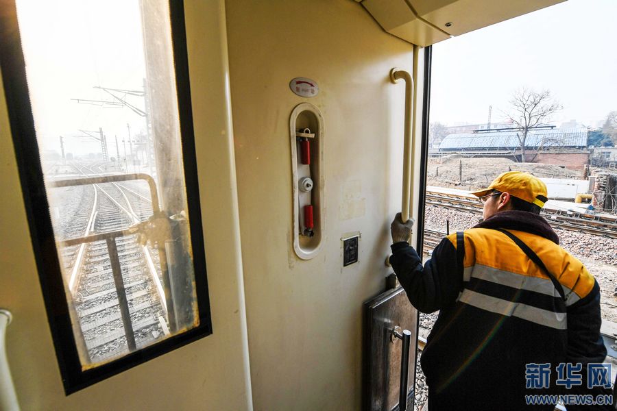 1月24日,一名調(diào)車員在車廂向外瞭望。 春節(jié)臨近,鐵路迎來節(jié)前客流高峰。鐵路運(yùn)輸工作中,離不開一群為火車“穿針引線”的人——調(diào)車員,他們24小時(shí)不間斷輪班,保證列車按時(shí)出入庫,并根據(jù)車次、客流的變化,對(duì)列車車廂進(jìn)行拆分和重新編組,保障春運(yùn)期間列車安全、準(zhǔn)時(shí)運(yùn)送旅客。 鄭州火車站運(yùn)轉(zhuǎn)車間調(diào)車長程浩說:“我們的工作是把一節(jié)節(jié)車廂編組成一列火車,將其中有問題的車廂換掉,送檢、清洗,再將整列火車?yán)交疖囌景l(fā)車,形象點(diǎn)說就是為火車穿針引線。”在鄭州火車站運(yùn)轉(zhuǎn)車間,調(diào)車小組一般由5人組成:一名調(diào)車長,四名組員。組長負(fù)責(zé)指揮調(diào)車任務(wù),組員負(fù)責(zé)檢查和監(jiān)督列車車廂之間的分解與連掛,為車輛進(jìn)行排風(fēng)、摘管等。 春運(yùn)期間,鄭州火車站運(yùn)轉(zhuǎn)車間平均每天要對(duì)70余列近1300輛車進(jìn)行調(diào)車作業(yè),比平時(shí)增加30%左右的工作量。 新華社記者 李博 攝 -