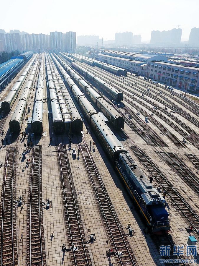 一列客車在完成編組后,駛向鄭州火車站(1月20日攝)。 春節(jié)臨近,鐵路迎來節(jié)前客流高峰。鐵路運(yùn)輸工作中,離不開一群為火車“穿針引線”的人——調(diào)車員,他們24小時(shí)不間斷輪班,保證列車按時(shí)出入庫,并根據(jù)車次、客流的變化,對(duì)列車車廂進(jìn)行拆分和重新編組,保障春運(yùn)期間列車安全、準(zhǔn)時(shí)運(yùn)送旅客。 鄭州火車站運(yùn)轉(zhuǎn)車間調(diào)車長程浩說:“我們的工作是把一節(jié)節(jié)車廂編組成一列火車,將其中有問題的車廂換掉,送檢、清洗,再將整列火車?yán)交疖囌景l(fā)車,形象點(diǎn)說就是為火車穿針引線!痹卩嵵莼疖囌具\(yùn)轉(zhuǎn)車間,調(diào)車小組一般由5人組成:一名調(diào)車長,四名組員。組長負(fù)責(zé)指揮調(diào)車任務(wù),組員負(fù)責(zé)檢查和監(jiān)督列車車廂之間的分解與連掛,為車輛進(jìn)行排風(fēng)、摘管等。 春運(yùn)期間,鄭州火車站運(yùn)轉(zhuǎn)車間平均每天要對(duì)70余列近1300輛車進(jìn)行調(diào)車作業(yè),比平時(shí)增加30%左右的工作量。 新華社記者 李博 攝