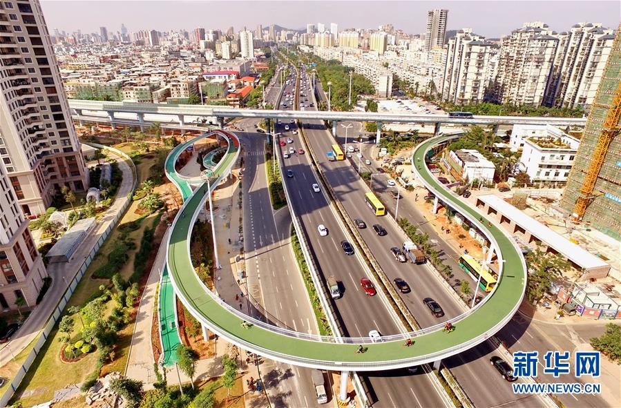 這是廈門市湖里區(qū)云頂中路和仙岳路交叉口的空中自行車道(2月9日攝)。1月26日,全國首條空中自行車道——福建廈門云頂路自行車快速道示范段試運營。這條全程高架的空中自行車道全長7.6公里,試運營以來吸引眾多市民前來騎行體驗,感受“空中騎行”的獨特魅力。 新華社記者 林善傳 攝 圖片來源:新華網(wǎng)