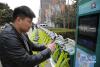 3月6日,在河南省寶豐縣,居民在一個(gè)租賃點(diǎn)使用手機(jī)掃碼借用公共自行車。 -