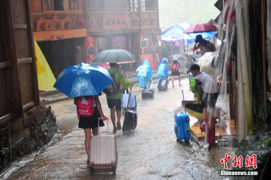 游客有序撤離三江侗族自治縣程陽八寨景區(qū)。龔普康 攝 -