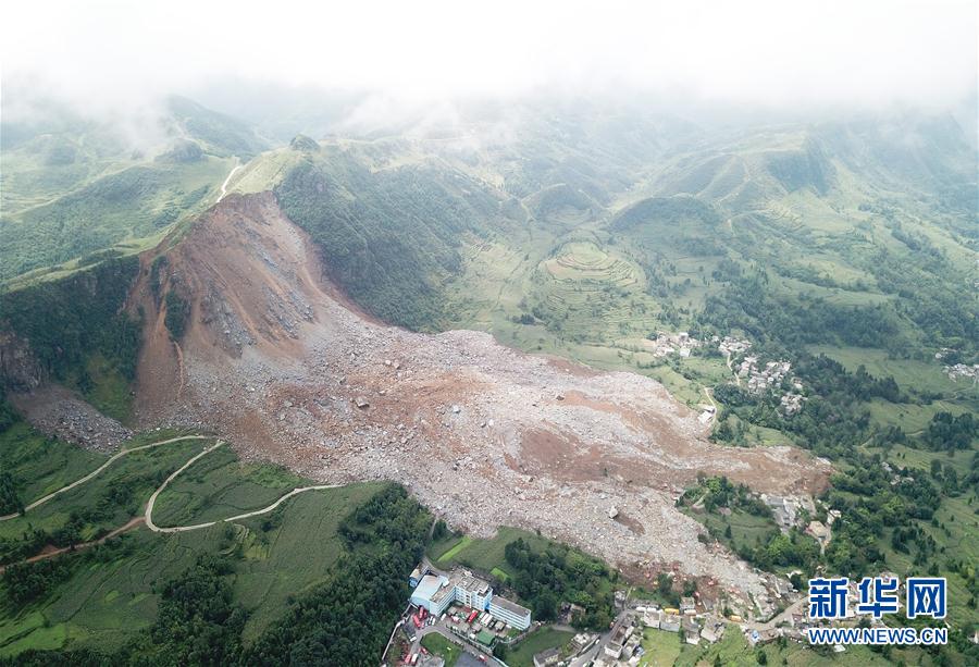航拍山體滑坡現(xiàn)場(8月29日攝)。截至8月29日16時30分,貴州省納雍縣山體崩塌地質災害救援現(xiàn)場已搜救出25人,其中17人死亡、8人受傷,目前尚有18人失聯(lián)。據悉,崩塌山體距離災害地垂直落差約200米,崩塌巖體約為60余萬立方米。災害發(fā)生后,當地組織專業(yè)力量全力以赴晝夜不休開展救援。新華社記者陶亮攝 -