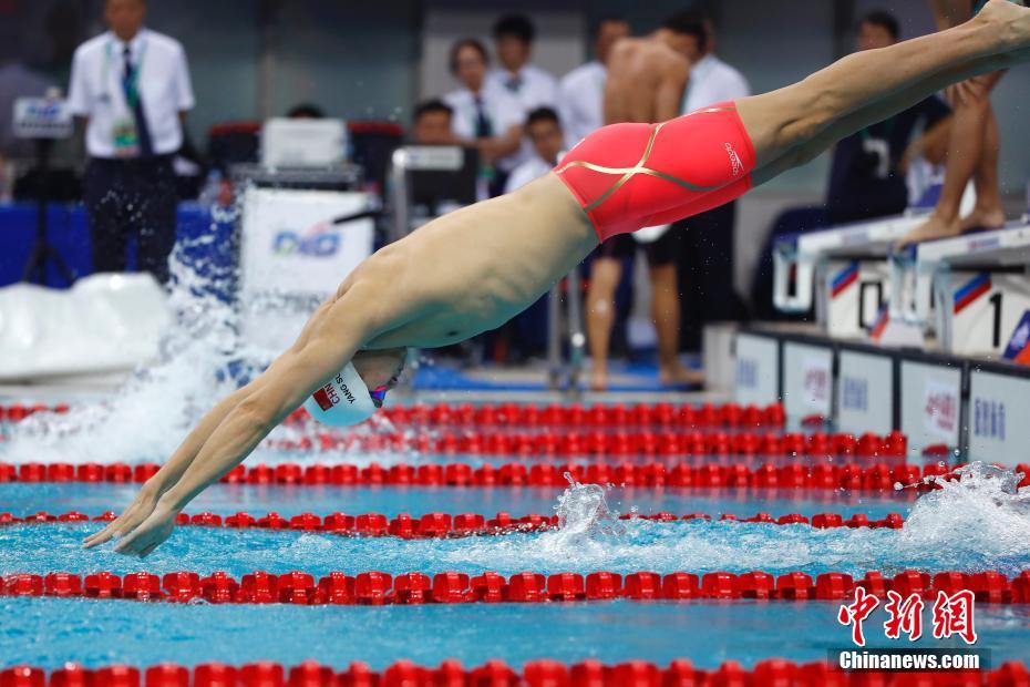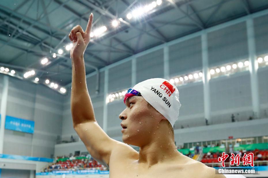 9月7日,天津全運會男子1500米自由泳決賽在天津奧林匹克中心游泳跳水館舉行,來自浙江的孫楊以15分05秒18奪冠。 中新社記者 富田 攝 -