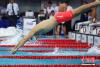 9月7日,天津全運會男子4x100米混合泳決賽在天津奧林匹克中心游泳跳水館舉行,由徐嘉余、閆子貝、李朱濠、孫楊組成的浙鄂隊以3分33秒12奪冠。圖為徐嘉余(黃帽)躍入水中。 中新社記者 富田 攝 -