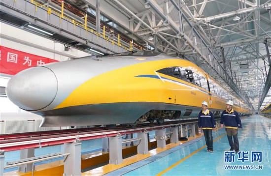 •   10月7日,一輛綜合檢測列車駛出京張高鐵北京北動車所。   日前,京張高鐵聯(lián)調(diào)聯(lián)試工作正式啟動,位于北京市昌平區(qū)的京張高鐵北京北動車所也隨之投入使用,未來將承擔京張高鐵動車組的檢修和整備等工作。京張高鐵起自北京北站,終點為張家口站,正線全長174公里,是2022年北京冬奧會的重要交通保障設施。開通運營后乘高鐵從北京到張家口的時間將縮短至1小時以內(nèi)。   新華社記者 馬寧 攝