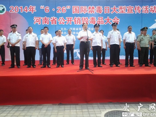 央廣網(wǎng)河南分網(wǎng)消息 (記者 李欽烽 通訊員 張波) 6月24日上午,由河南省禁毒委主辦、省公安廳承辦、鄭州市公安局協(xié)辦的“河南公開銷毀毒品大會”在鄭州新區(qū)藝術中心廣場隆重舉行。省政府副省長、省禁毒委主任李亞發(fā)表重要講話,省長助理、省禁毒委常務副主任、省公安廳廳長王小洪主持大會,省直有關部門負責同志,公安民警、武警和禁毒志愿者、社會各界群眾代表1000余人參加大會。