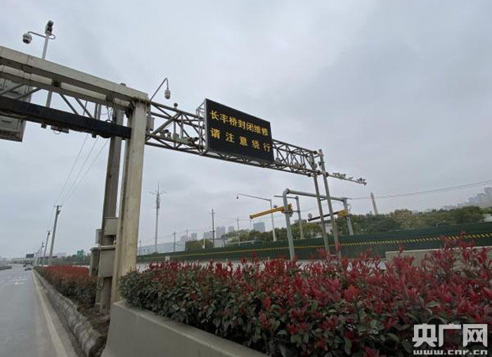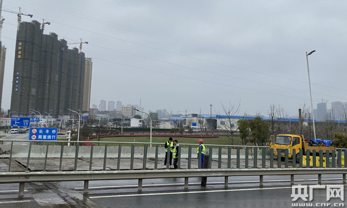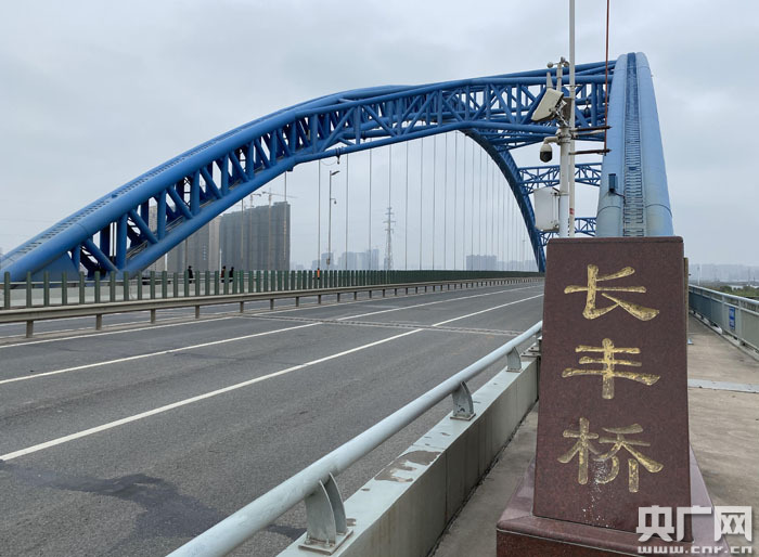 圖為:武漢長豐橋正在進行交通管制 記者王超 攝
