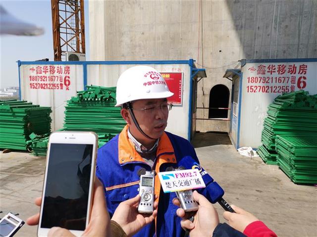 安九鐵路鳊魚洲長(zhǎng)江大橋項(xiàng)目負(fù)責(zé)人接受采訪。