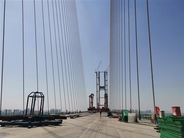 “大橋采用交叉索設(shè)計(jì),主要是為了提高大橋主跨剛度,彌補(bǔ)大跨度鋼箱梁剛度小的不足,同時(shí)又兼顧經(jīng)濟(jì)性與實(shí)用性。”中鐵大橋局安九鐵路項(xiàng)目經(jīng)理王貴明形象比喻說,這類似于在兩個(gè)相隔很遠(yuǎn)的凳子上架一個(gè)木板,在木板上放重物時(shí),木板中間就會(huì)向下變形或折斷;但如果在木板中間加一個(gè)足夠的拉力就能避免木板過大變形或損壞。