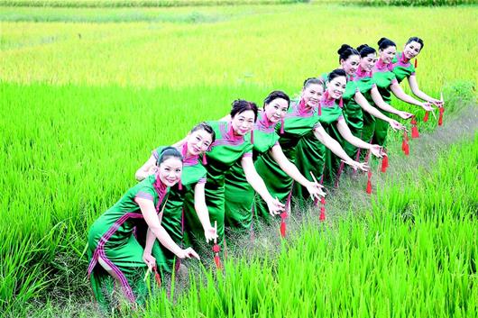 9月12日,公安縣天露湖國家農(nóng)業(yè)公園金燦燦的稻田里,民間文藝愛好者共慶今秋豐收。當(dāng)日,首屆中國農(nóng)民豐收節(jié)·公安篇活動舉行。公安縣深化農(nóng)村各類改革,現(xiàn)代農(nóng)業(yè)持續(xù)高速發(fā)展,公安葡萄、公安牛肉、閘口小龍蝦、章田寺大米等多個品牌榮獲國家地理標(biāo)志證明商標(biāo)。