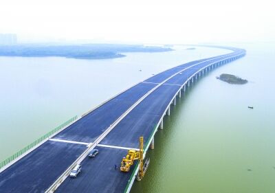 作為西四環(huán)中的重要一段,全長5.1公里的后官湖大橋,橫穿整個湖面。“后官湖是戰(zhàn)略后備水源地,因此在建設(shè)中,我們特意在橋面預(yù)制了雨污分流設(shè)施!鼻f新宇如是說。根據(jù)指引,記者在橋面看到,大橋兩側(cè)的排水溝中,每隔5米就設(shè)置有一低一高兩個排水孔。