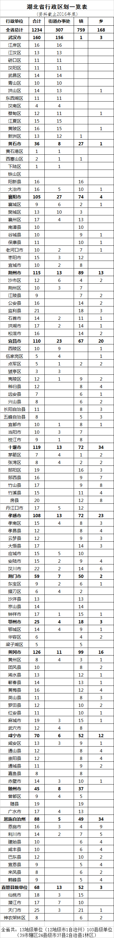 關(guān)鍵詞:湖北;行政區(qū)劃;調(diào)整;一覽表