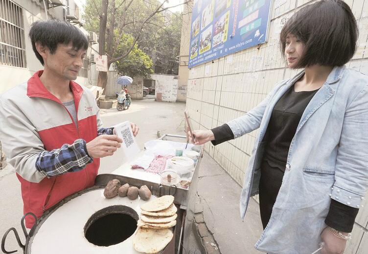 圖為:如今去路邊小攤買烤紅薯,也能用手機掃碼付款。
