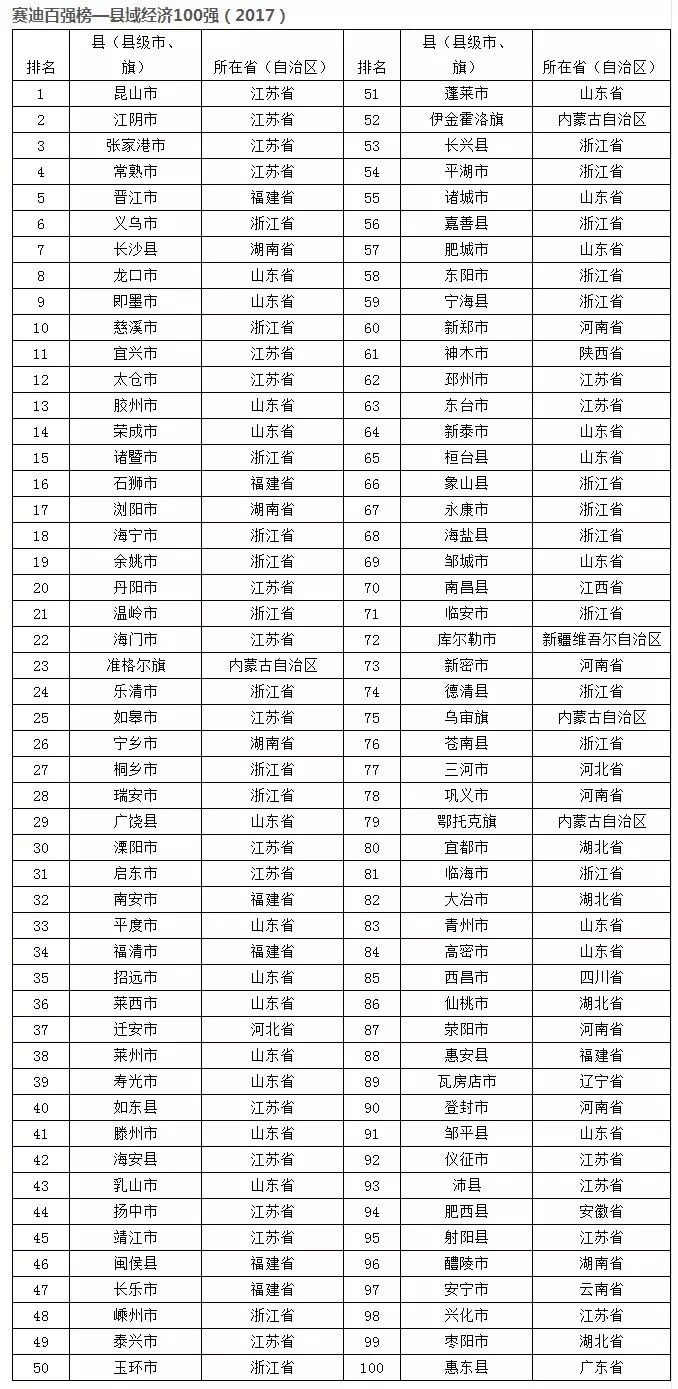 賽迪百強(qiáng)榜-縣域經(jīng)濟(jì)100強(qiáng)(2017)顯示,截至今年6月,除港澳臺外,全國縣級行政區(qū)共計(jì)1897個,包括366個縣級市、1360個縣、117個自治縣、49個旗、3個自治旗,1個林區(qū)、1個特區(qū)。此次發(fā)布的縣域百強(qiáng)榜加重了對綠色發(fā)展成效的考量,我省宜都市位列全國第80位,大冶、仙桃、棗陽分別排名82、86和99位。