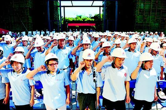 圖為:中天建設(shè)集團舉行工會新會員集體入會宣誓。