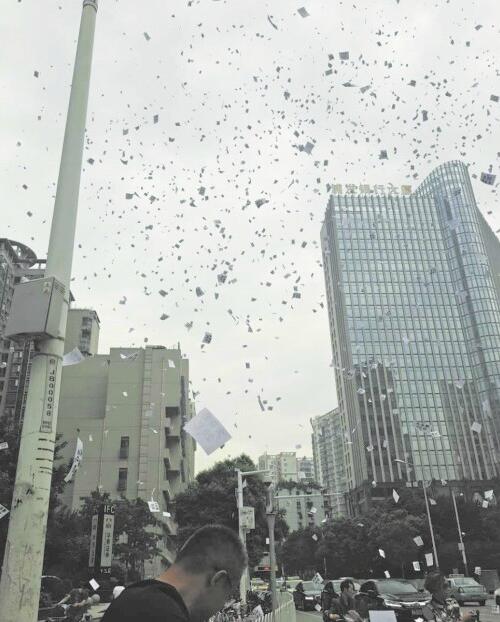 附近居民告訴記者,當(dāng)時無數(shù)張紙猶如雪花般從天而降,發(fā)現(xiàn)是一家方便面的廣告,引起了很多人圍觀。