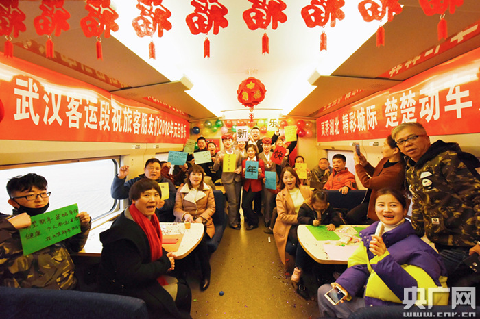 武漢客運(yùn)段城際動(dòng)車(chē)組車(chē)間黨總支書(shū)記章瓊表示,武漢客運(yùn)段一直致力于打造精品文化列車(chē),2018年元旦來(lái)臨之際舉辦這個(gè)活動(dòng)是為了讓旅客展望新年,感受祝福,讓旅途更加溫馨溫暖,如同高速發(fā)展的中國(guó)鐵路一般,駛向美好的未來(lái)。