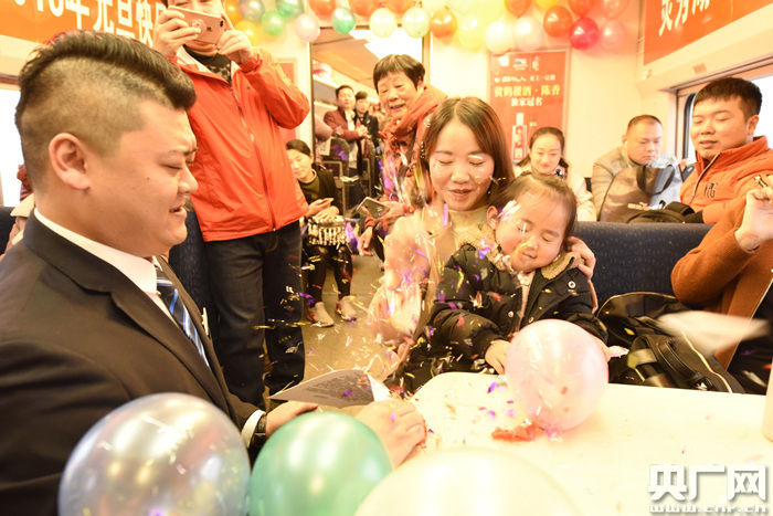 央廣網(wǎng)武漢12月31日消息(記者張毛清 黃炎秋 通訊員蘇杭 宋進(jìn)軍)“我希望今年我的孩子能考上理想的大學(xué)!”“我希望我可以找到一個(gè)女朋友!”“我希望我們的國(guó)家更加繁榮昌盛!”12月30日上午,在黃岡東開(kāi)往孝感東的C5342次列車(chē)上,武漢客運(yùn)段舉行了慶元旦聯(lián)歡活動(dòng),動(dòng)姐與旅客共同寫(xiě)下新年愿望,相互祝福,迎接2018年的到來(lái)。