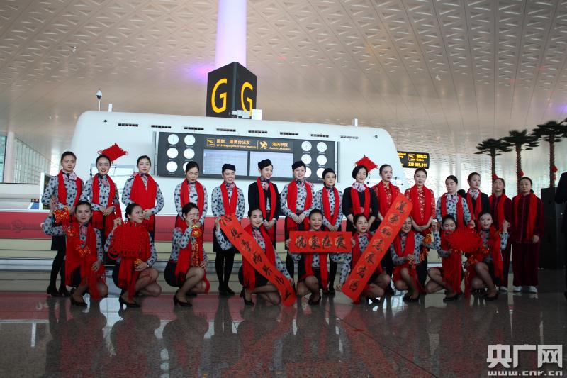 昨天,2018年春運的大幕正式拉開。武漢天河機場T3航站樓的空姐們紛紛秀上才藝,為旅客送祝福。