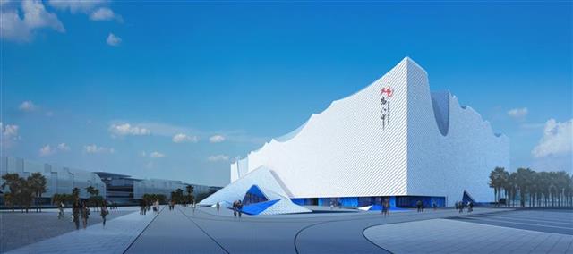 馬六甲印象歌劇院是馬六甲最大單體公共建筑,可同時容納2000名觀眾。主體共6層,結(jié)構(gòu)凈高33.6米,總建筑面積68796.5平方米。中建三局項目執(zhí)行經(jīng)理介紹,在項目早期概念設計中,建筑外形整體像一片翠綠的荷葉,細節(jié)部分也融入了中國陶瓷、絲綢、茶葉等諸多元素。在項目建設中,業(yè)主出于成本與工期的考慮,改變了整個建筑的外形,整體呈四方形,藍色的建筑外套白色的幕墻,簡潔大方,對映著馬六甲海峽的藍天白云,美輪美奐。