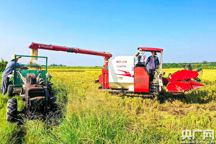 圖為:農(nóng)民收割水稻 央廣網(wǎng)發(fā) 通訊員供圖