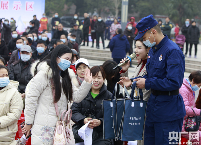 12月10日,在湖北省荊州市監(jiān)利市玉沙廣場(chǎng),200余名市民零距離學(xué)習(xí)消防安全知識(shí)。