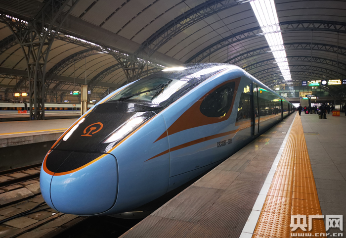 圖為:“藍(lán)暖男”復(fù)興號?吭跐h口站 央廣網(wǎng)發(fā) 通訊員供圖