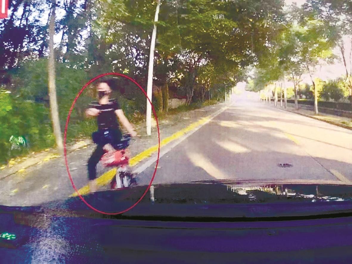 學校路段道路很窄,僅僅只有兩車道寬,孫先生非常小心地行駛至左側(cè)車道,略微提速超車。就在這時,一名戴著口罩的黑衣男子騎著共享單車迎面而來,與孫先生的汽車發(fā)生輕微碰撞。孫先生隨即下車查看情況,只見騎車男子倒地不起,地上還有兩部屏幕破裂的蘋果手機,黑色轎車則突然加速駛離現(xiàn)場。