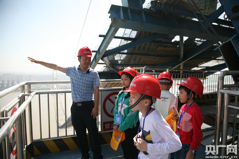 9月29日,中鐵大橋局集團公司團委書記周開富為孩子們講述了大橋建成的故事。(央廣網(wǎng)發(fā) 通訊員王一凡 攝)
