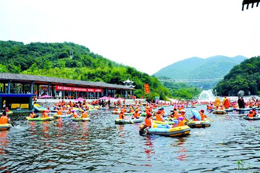 淮河鎮(zhèn)曾以伐木燒炭、開山采礦為主要經(jīng)濟(jì)來(lái)源,日子越過(guò)越窮。近3年,該鎮(zhèn)封山育林,轉(zhuǎn)手發(fā)展綠色經(jīng)濟(jì),建起西游記漂流、抱樸谷兩大景區(qū),去年又動(dòng)工建設(shè)玉皇頂、神農(nóng)部落景區(qū),規(guī)劃投資6億元,全鎮(zhèn)先后建起藍(lán)莓、茶葉、核桃、牡丹等“八大莊園”,總面積約5萬(wàn)畝,繪成“四季花海,全景淮河”。2016年,該鎮(zhèn)接待游客30多萬(wàn)人,直接收入3000萬(wàn)元。