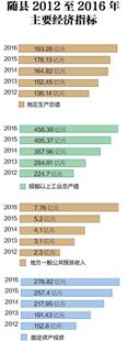 建縣以來(lái),隨縣主要經(jīng)濟(jì)指標(biāo)持續(xù)高位運(yùn)行。至2016年,縣域經(jīng)濟(jì)排名在全省累計(jì)大幅上升32位,主要經(jīng)濟(jì)指標(biāo)實(shí)現(xiàn)“六大倍增”:隨縣實(shí)現(xiàn)地區(qū)生產(chǎn)總值193.28億元,是建縣初的2.5倍;規(guī)模以上工業(yè)總產(chǎn)值456.39億元,是建縣初的6.3倍;地方一般公共預(yù)算收入7.76億元,是建縣初的19.5倍;固定資產(chǎn)投資278.82億元,是建縣初的7.9倍;社會(huì)消費(fèi)品零售總額129.24億元,是建縣初的2.5倍;農(nóng)村常住居民人均可支配收入14168元,是建縣初的2.5倍。在一片荒地上從零起步,建起一個(gè)省級(jí)開發(fā)區(qū)和一座生態(tài)園林新縣城,先后榮獲“全國(guó)糧食生產(chǎn)先進(jìn)縣”“全省縣域經(jīng)濟(jì)發(fā)展進(jìn)位先進(jìn)縣”“全省黨建工作先進(jìn)單位”“全省‘三農(nóng)’發(fā)展先進(jìn)縣”“湖北省平安縣”“湖北省旅游強(qiáng)縣”等眾多榮譽(yù)。