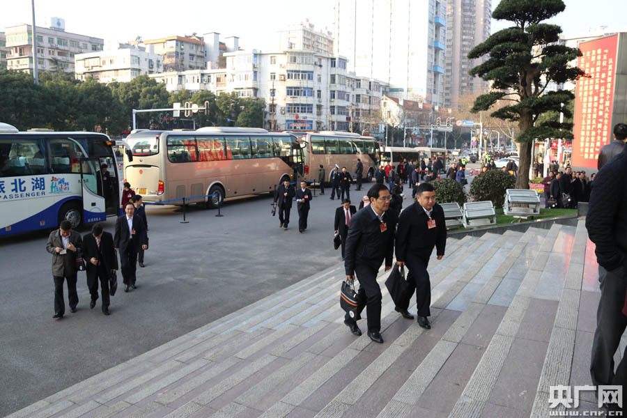 圖為委員們進(jìn)入會場 -