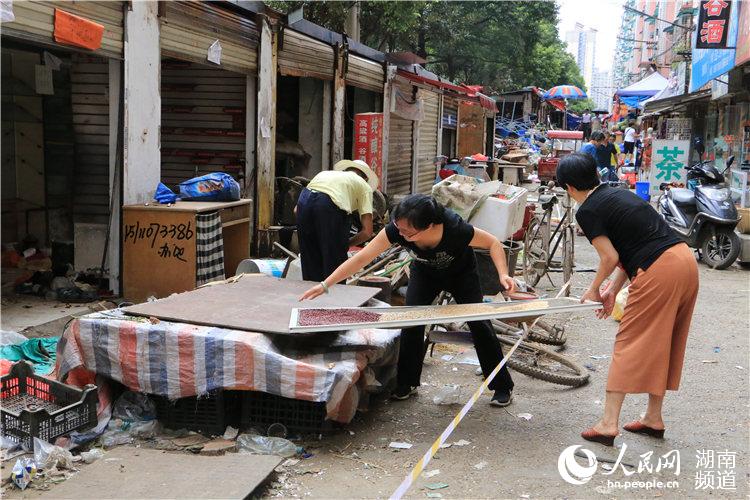 市民們自覺搬運(yùn)占道物品。 人民網(wǎng)長(zhǎng)沙7月20日電 (萬(wàn)麗君)今天上午,隨著城管人員揮錘,位于長(zhǎng)沙市天心區(qū)赤嶺路街道南大橋社區(qū)的違規(guī)菜市場(chǎng)進(jìn)入拆違階段,拆除面積近8000平米。在街道和社區(qū)的妥善安排下,原有菜市場(chǎng)商戶均已入駐到新農(nóng)貿(mào)市場(chǎng)。 攤販占道、道路濕滑……存在于樓棟之間的湖南開關(guān)廠農(nóng)貿(mào)市場(chǎng)曾讓小區(qū)居民苦不堪言。如今,市場(chǎng)被正式拆除,還小區(qū)居民一個(gè)整潔宜居環(huán)境,讓周圍的居民們點(diǎn)贊不斷。 菜市場(chǎng)環(huán)境臟亂差 引發(fā)市民擔(dān)憂 上午,記者在現(xiàn)場(chǎng)看到,在湖開小區(qū)的新2棟和新3棟之間,密密麻麻擺滿了攤位,僅有非常狹窄的通道供市民通行,爛菜葉、塑料袋等垃圾隨處可見,環(huán)境十分混亂。 “臟、亂、差!痹谛^(qū)經(jīng)營(yíng)雜貨鋪的黃老板看著就擺在自己店鋪門口的小攤,連連搖頭,“道路坑坑洼洼,雨天濕滑,都不敢讓老人小孩出門,而且還存在很嚴(yán)重的消防隱患! 據(jù)菜市場(chǎng)所屬南大橋社區(qū)的社區(qū)書記許艷介紹,開關(guān)廠農(nóng)貿(mào)市場(chǎng)成立于2000年,除本身市場(chǎng)攤位,更有不少本地人在沿路臨時(shí)擺攤設(shè)點(diǎn),導(dǎo)致沿線垃圾成堆, 衛(wèi)生環(huán)境差, 管理難度大,居民投訴不斷。 針對(duì)居民所反映的問(wèn)題,7月初,赤嶺路街道、南大橋社區(qū)聯(lián)合執(zhí)法部門對(duì)違規(guī)菜市場(chǎng)下達(dá)了限期搬離通知。今天上午,消防、市容、城建、安監(jiān)等執(zhí)法部門對(duì)違規(guī)露天菜市場(chǎng)進(jìn)行取締拆除。 原有商戶搬至商業(yè)街 升級(jí)改造還市民宜居環(huán)境 違規(guī)露天菜市場(chǎng)被拆,原有的70多名商戶如何安置?據(jù)了解,在街道和社區(qū)的協(xié)調(diào)下,幾乎所有商戶都已搬至地下的興威商業(yè)街,重新營(yíng)業(yè)。商業(yè)街距離原有菜市場(chǎng)不過(guò)5分鐘步行路程,對(duì)于商戶經(jīng)營(yíng)并未造成太大影響。 在露天菜市場(chǎng)做了20多年蔬果生意的賀德意也搬到了地下農(nóng)貿(mào)商場(chǎng),地面干凈整潔、時(shí)常有熟客光顧,讓他很快適應(yīng)了新的經(jīng)營(yíng)環(huán)境。 “今天的菜都賣的差不多了,都是熟客呢!” 賀德意說(shuō),搬下來(lái)之后,生意并沒有大幅減少,而且地下商場(chǎng)不僅環(huán)境好,社區(qū)還安裝了電風(fēng)扇散熱,比在露天經(jīng)營(yíng)要相對(duì)舒服。 據(jù)興開鋪商業(yè)運(yùn)營(yíng)中心主管盛艷新介紹,目前已有78戶原有露天菜市場(chǎng)商戶搬入地下農(nóng)貿(mào)商場(chǎng)。針對(duì)商戶變多的情況,運(yùn)營(yíng)中心將增加抽風(fēng)系統(tǒng),打通樓道,改善商戶的經(jīng)營(yíng)環(huán)境,讓居民買菜更加方便。 據(jù)悉,露天菜市場(chǎng)拆除之后,社區(qū)將會(huì)進(jìn)行提質(zhì)改造,破損的水泥路將被全部更換為瀝青路面,并且增加綠化,變成居民休閑娛樂的好去處。