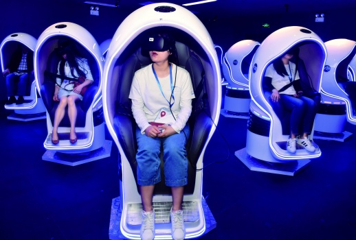 5月18日晚,市民在體驗VR沉浸式“帛畫奇境”。當天是國際博物館日,湖南省博物館舉行“博物館之夜”活動,通過現(xiàn)代技術(shù)創(chuàng)新與歷史文物的融合,讓市民和游客體驗一場奇妙的文化之旅。湖南日報記者 郭立亮 攝