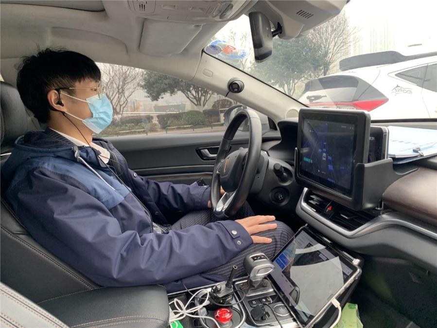 “面對開放道路復(fù)雜的交通狀況,我不需要握方向盤,這臺無人駕駛公交車就可以沿預(yù)定線路,完成通過紅綠燈路口、轉(zhuǎn)彎、?康纫幌盗袆幼!弊隈{駛位的安全員何建成說。