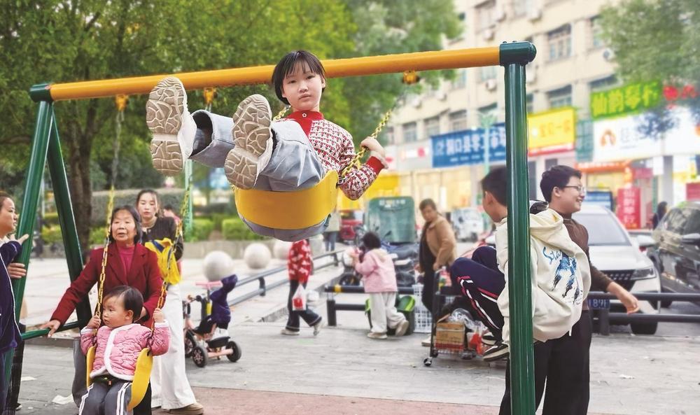 在文體設施上玩耍的孩子們。曾廣茶 攝