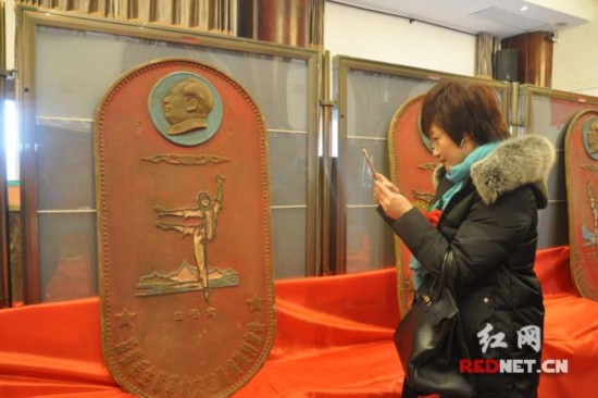 為紀(jì)念毛澤東誕辰123周年,12月18日上午,“紅色經(jīng)典巨型徽章特展”在湘潭白石古玩街開幕,共展出90余枚上個(gè)世紀(jì)50年代至70年代的紅色徽章。