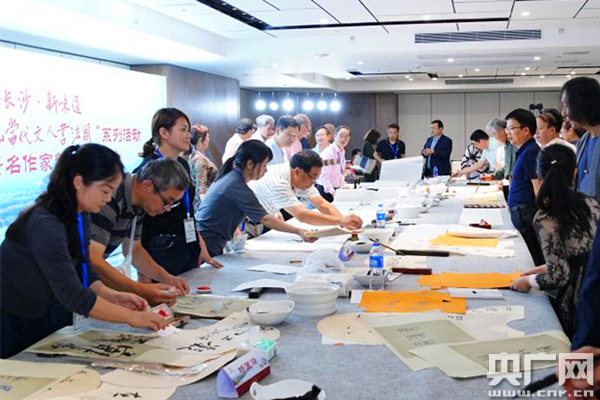 第二屆“書堂山當(dāng)代文人書法周”系列活動(dòng)——“當(dāng)代著名作家望城行”活動(dòng)現(xiàn)場(chǎng)(央廣網(wǎng)發(fā) 望城區(qū)委宣傳部供圖)