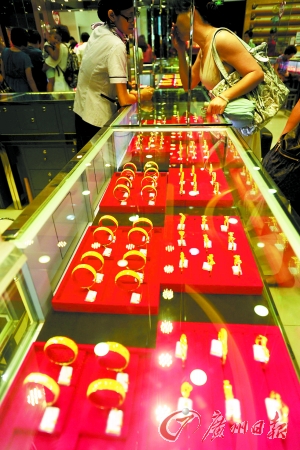 “老鳳祥被查事件,聽說了呀,大牌之間潛規(guī)則不降價,要不然,國際金價跌那么快,怎么沒有見他們大降價?”在天河區(qū)的某高檔商場,林阿姨對記者如是說;周末她來商場挑黃金項鏈,但只看不買,“報上說,黃金還會跌嘛!