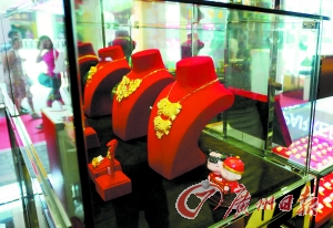 整體來看,剛剛過去的周末,由于國際黃金價格反彈后震蕩,廣州市場的首飾交易比較平淡。目前廣州類似老鳳祥、周大福的知名品牌,千足金首飾價格較一周前微升至325~340元每克,位于3個月內(nèi)的較低位置。部分顧客向記者抱怨:金價都大跌過,大品牌也不降價?是不是真有什么內(nèi)部合約?