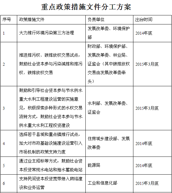 。ㄎ澹┩苿迎h(huán)境污染治理市場化。在電力、鋼鐵等重點行業(yè)以及開發(fā)區(qū)(工業(yè)園區(qū))污染治理等領(lǐng)域,大力推行環(huán)境污染第三方治理,通過委托治理服務(wù)、托管運營服務(wù)等方式,由排污企業(yè)付費購買專業(yè)環(huán)境服務(wù)公司的治污減排服務(wù),提高污染治理的產(chǎn)業(yè)化、專業(yè)化程度。穩(wěn)妥推進(jìn)政府向社會購買環(huán)境監(jiān)測服務(wù)。建立重點行業(yè)第三方治污企業(yè)推薦制度。