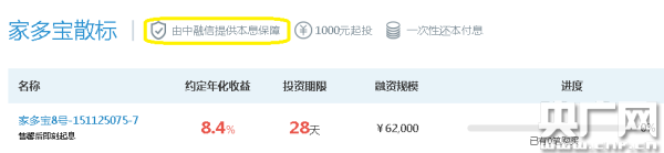 在鏈家理財(cái)?shù)木W(wǎng)站上,中融信給出的承諾是“中融信擔(dān)保公司會(huì)提供擔(dān)保,借款人一旦發(fā)生逾期還款,即啟動(dòng)1億保證金進(jìn)行本息代償”。