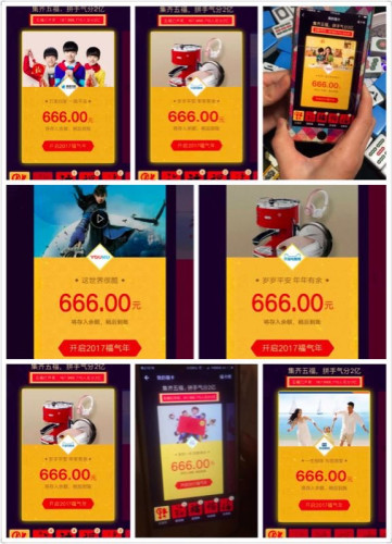 支付寶的五福紅包從1月18日開始推出后,隨即成為一場全民狂歡,五福相關話題幾乎每天都出現在微博熱搜。有網友笑稱,現在簡直是看到“!弊志蜅l件反射掏出手機,還有人用糖果、口紅甚至雞骨頭拼出“福”字來掃,可謂腦洞大開。還有網友說,幫父母集齊了五福,順便教會了爸媽用智能手機。